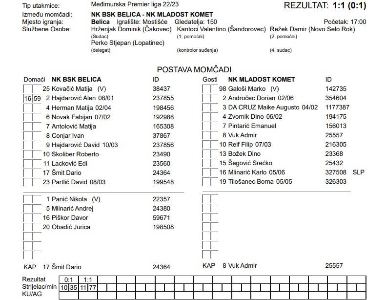 NK BSK BELICA – NK MLADOST KOMET 1:1