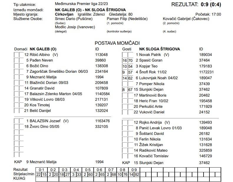 NK GALEB (O) – NK SLOGA ŠTRIGOVA 0:9