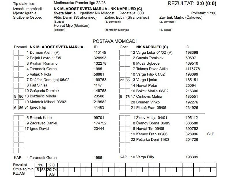 NK MLADOST SVETA MARIJA – NK NAPRIJED (C) 2:0