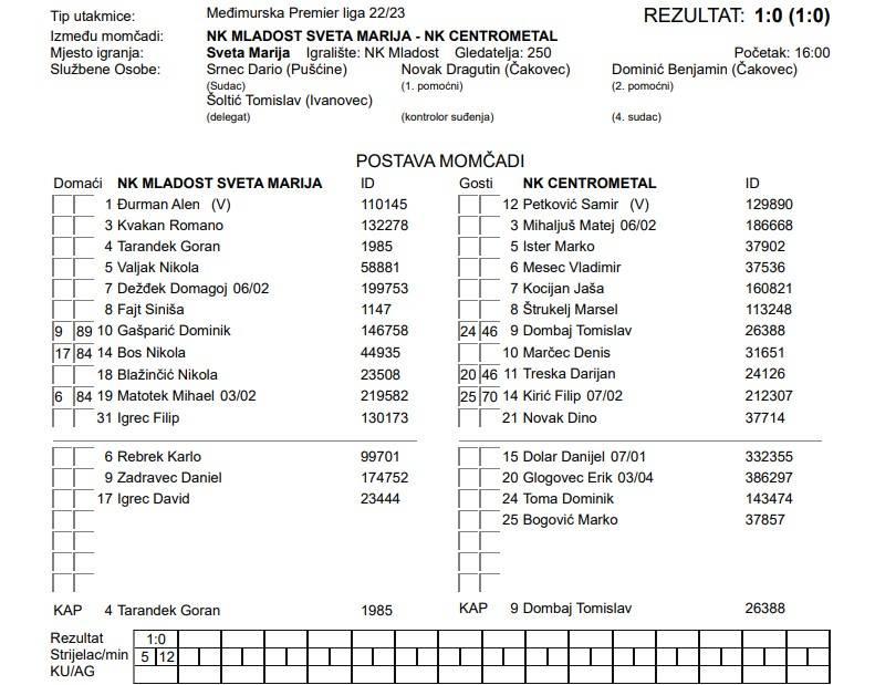 NK MLADOST SVETA MARIJA – NK CENTROMETAL 1:0