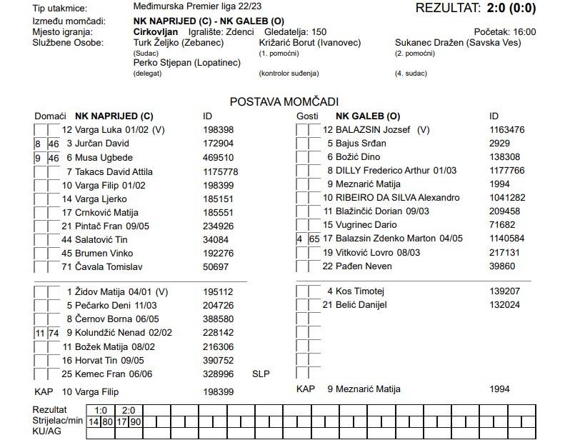 NK NAPRIJED (C) – NK GALEB (O) 2:0