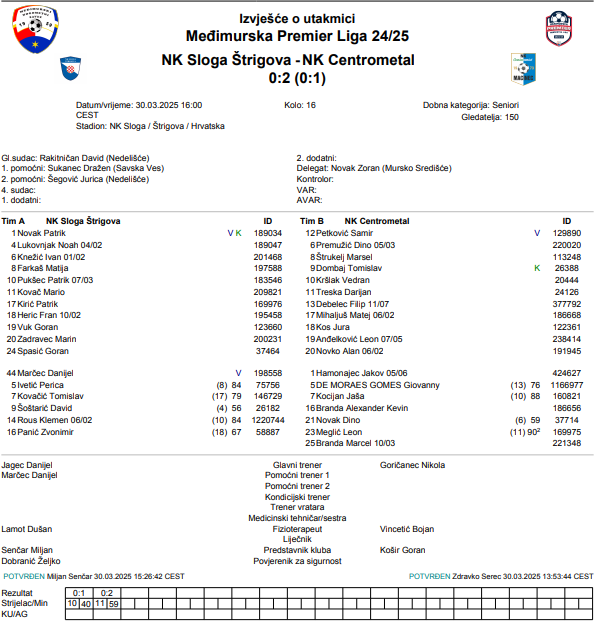 Prvo čestitam svojim igračima, posebno čestitam igračima na klupi, jer to nam daje dimenziju više, možemo tijekom utakmice mijenjati ritam, a to je neprocjenjivo za svakog trenera. Danas smo stvarno taktičko-tehnički, trkački odradilo tekmu protiv dobre ekipe iz Štrigove, kad igraju druga i četvrta ekipa lige nema tu previše ljepote, ali mi smo sretni, zadovoljni, držimo kontinuitet i to je najbitnije. Sretno u daljnjem natjecanju domaćinu, a mi već danas se okrećemo suboti i derbiju protiv vrlo dobre ekipe iz Podturna– izjavio je trener Centrometala, Nikola Goričanec.