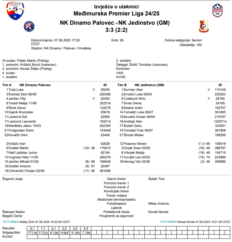 NK Dinamo (P) – NK Jedinstvo (GM) 3:3