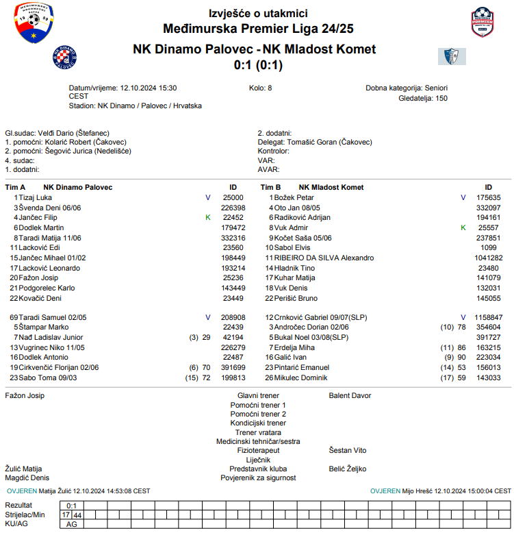 NK Dinamo Palovec – NK Mladost Komet 0:1