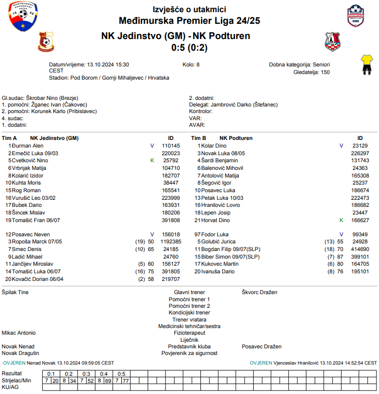 Podturen je na gostovanju u Gornjem Mihaljevcu bio nemilosrdan. Pod Borom su izabranici Dražena Škvorca postigli pet pogodaka i odnijeli sva tri boda doma. Matija Antolović i Igor Šegović najzaslužniji su za ovo visoko slavlje Krvavih. Antolović je brojao do hattricka, a Šegoviću je jedan pogodak falio do istog učinka. Podturen je ovom pobjedom ubilježio 14. bod ove sezone što je dovoljno za peto mjesto na ljestvici. Jedinstvo je pak ostalo na šest bodova i imaju samo jedan više od posljednje plasiranog Bratstva.