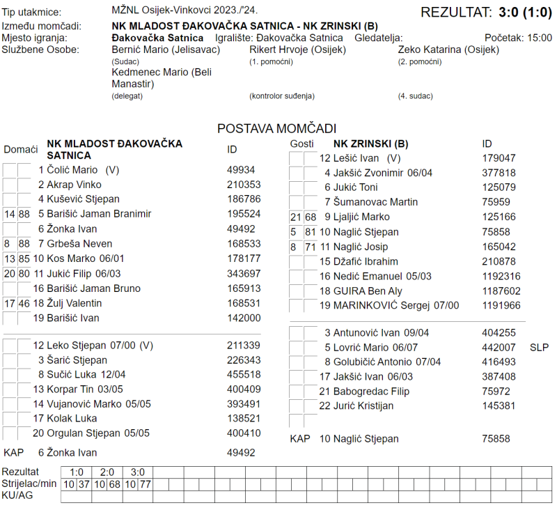 – Zaslužena pobjeda domaćina i impresivna partija domaćeg igrača Marka Kosa koji je zabio sva 3 gola. Čestitke i njemu i Mladosti i sretno dalje. A šta reći o nama, i kad nešto pokušamo i želimo ubiše nas individualne greške koje su tragikomične. Oscilacije su velike i očito je da smo u krizi i igre i rezultata. Nemiran tjedan pred nama, u nedjelju il’ jesmo il’ nismo. – kazao nam je Zdravko Filipović, trener Zrinskog.