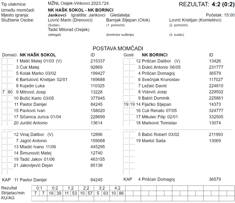 – Danas smo otišli na gostovanje bez nekoliko standardnih igrača, vratar nam je morao igrati i još se i on ozlijedio tako da našim mukama nije bilo kraja. Čak i takvi smo nestvarno vodili na poluvremenu 2:0 i solidno stajali na terenu, međutim u drugom poluvremenu smo fizički pali i nismo imali snage zadržati vodstvo. Šteta, ovo nam je bila najveća prilika dosad za 3 boda i samo da smo imali malo širine danas, uspjeli bi nešta upisat. Čestitam domaćinu na pobjedi i korektnosti. – mišljenje je Domagoja Prišćana, kapetana Borinaca.