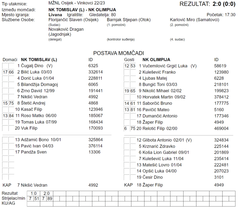 Susjedni se derbi igrao u Livani gdje je tamošnjem Tomislavu na noge stigla osječka Olimpija. Prvi je dio prošao bez pogodaka, a onda u drugom dijelu na scenu stupa najbolji strijelac lige, kapetan Tomislava, Vedran Nikšić. On je postigao oba pogotka, te je svojoj momčadi osigurao tri nova boda.