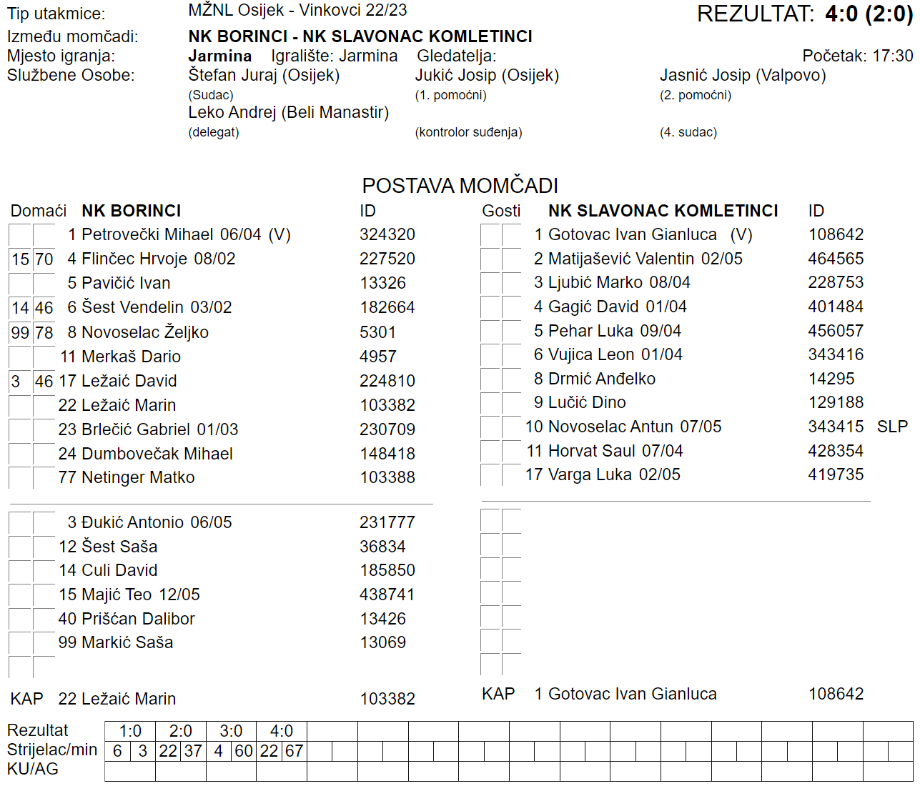 Borinci su danas očekivano stigli do novih bodova pobjedom nad fenjerašem iz Komletinaca. Iako je gostujući vratar u prvom dijelu obranio dva kaznena udarca, Borinci su čak četiri puta tresli mrežu i zasluženo stigli do pobjede.