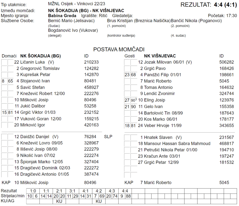ŠOKADIJA – VIŠNJEVAC 4:4