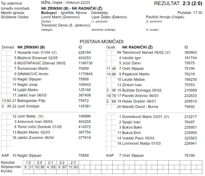 ZRINSKI – RADNIČKI (Ž) 2:3