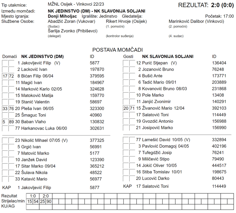 – Tvrda utakmica s malo šansi. Prvo poluvrijeme 0:0 bez prilika. U nastavku domaćin dolazi do zgoditaka nakon naše greške u obrani. Poslije toga smo se otvorili i imali dvije jako dobre prilike te dominaciju na terenu ali nismo nikako uspjeli zabiti izjednačujući pogodak. Domaćin korektan kao i suđenje. Moram reći da je Jedinstvo jako dobra ekipa a imaju i prekaljenog stručnjaka gospodina Stipu Mađarića. Jedinstvu želim puno sreće dalje u prvenstvu i čestitam im na pobjedi. Mi se okrećemo novoj utakmici protiv ekipe iz Livane i nadam se da ćemo se uspjeti dobro pripremiti. Sportski pozdrav iz Soljana – poruka je Milana Matijevića, trenera Slavonije