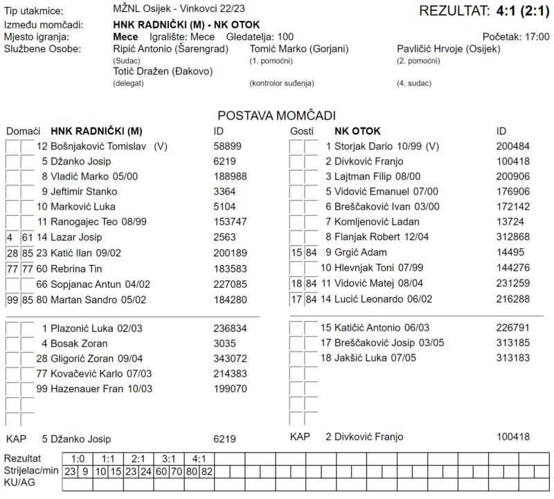 Denis Plantosar je i u drugoj utakmici na klupi ekipe iz Meca stigao do uvjerljive pobjede. Radnički je u subotu uvjerljivi svladao nogometaše Otoka. Dva je pogotka za domaće postigao Katić, dok su po jednom mrežu tresli Rebrina i Martan.