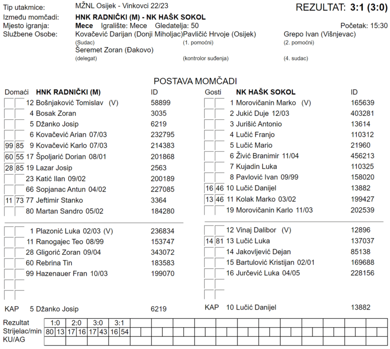 RADNIČKI (M) – HAŠK SOKOL 3:1