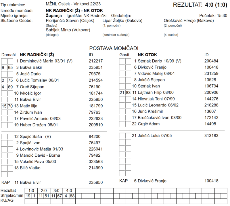 Županjci su danas stigli do nove pobjede u susretu s Otokom. Prvi je pogodak pao već u prvoj minuti susreta kada je Otočane načeo Huber. U pobjedi Radničkog dva je pogotka postigao fantastični Bukva, dok je jedan djelo Lovrinovića.