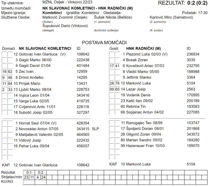SLAVONAC – RADNIČKI (M) 0:2