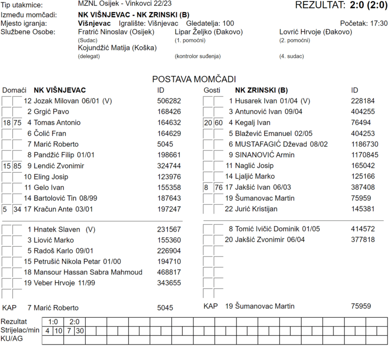 VIŠNJEVAC – ZRINSKI 2:0