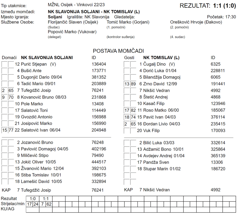 SLAVONIJA – TOMISLAV (L) 1:1