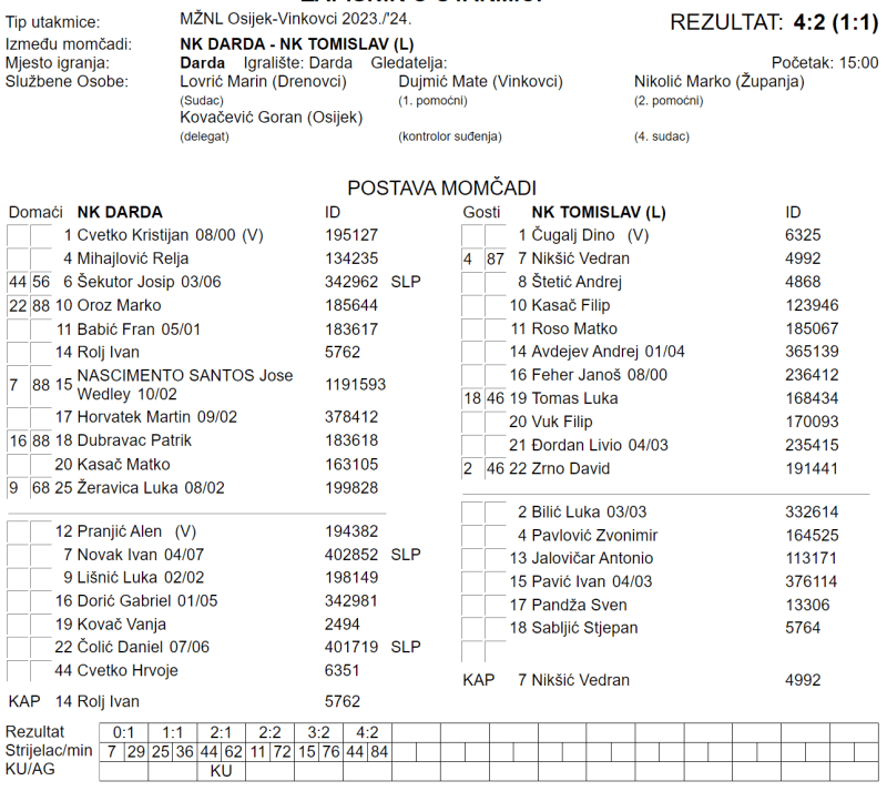– Napokon pobjeda i kući. Rekao bih potpuno zaslužena. Opet smo promašili puno prilika, pa je u jednom trenutku sve ponovno mirisalo na neriješeno. Ali upornosti i bolja igra u polju, jednostavno je urodila plodom. Čestitam svim akterima na korektnosti, a posebno svojim dečkima na karakteru i želji za pobjedom, koju su na kraju zasluženo i ostvarili. – mišljenje je Aleksandra Stojkovića, trenera Darde.
