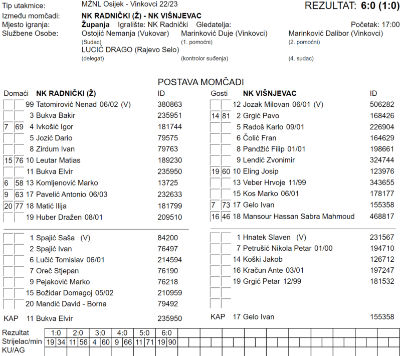 RADNIČKI (Ž) – VIŠNJEVAC 6:0