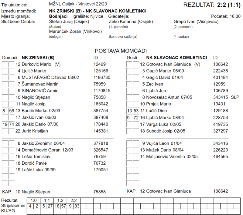 – Nakon vodstva u 2. minuti imali smo šansu za 2:0 koju nismo realizirali. Nakon toga gost zabija za izjednačenje iz prekida, mi fulamo još jednu šansu i odlazimo na odmor izjednačeno. U nastavku imamo neki posjed ali gost se dobro brani i ima iz polukontre 2-3 situacije koju jednu realizira. Mi se otvaramo, dominiramo, postižemo izjednačujući pogodak i dalje nije išlo. Previše nas je falilo danas i jednostavno nismo bili pravi tako da je rezultat na kraju realan – izjavio je Mario Đurković, trener Zrinskog.