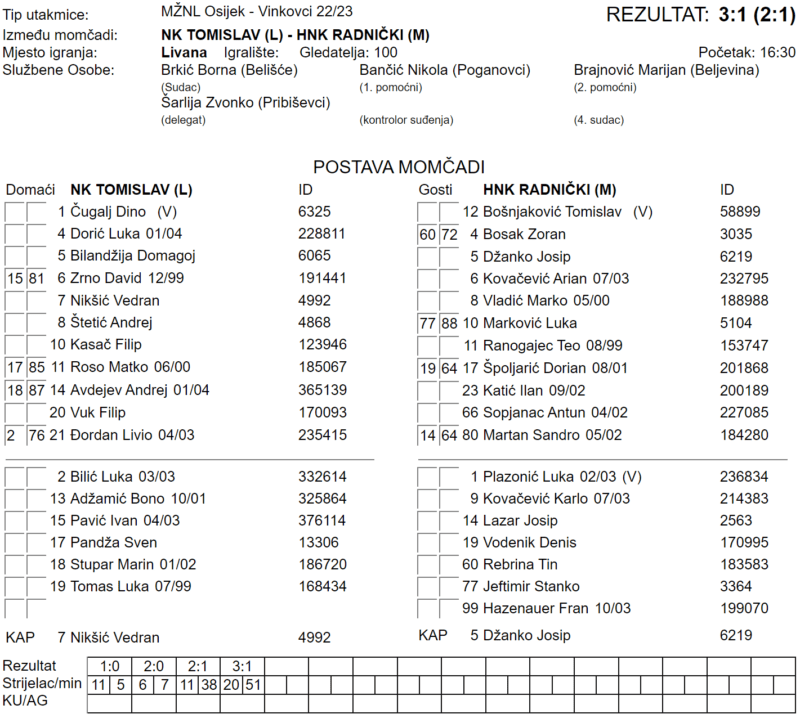 TOMISLAV (L) – RADNIČKI (M) 3:1