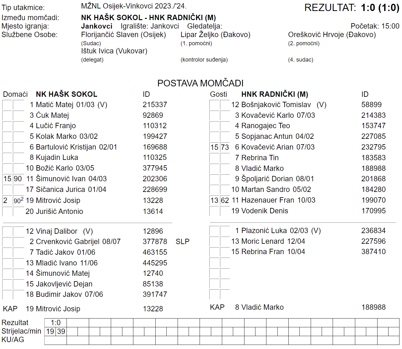 HAŠK SOKOL – RADNIČKI (M) 1:0