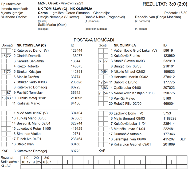 TOMISLAV (C) – OLIMPIJA 3:0
