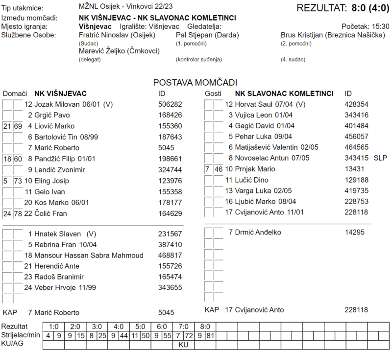 VIŠNJEVAC – SLAVONAC 8:0