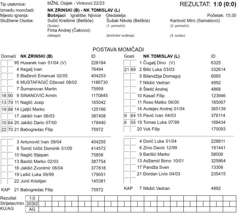 ZRINSKI – TOMISLAV (L) 1:0