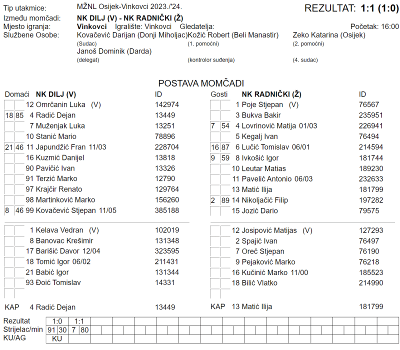 DILJ – RADNIČKI (Ž) 1:1