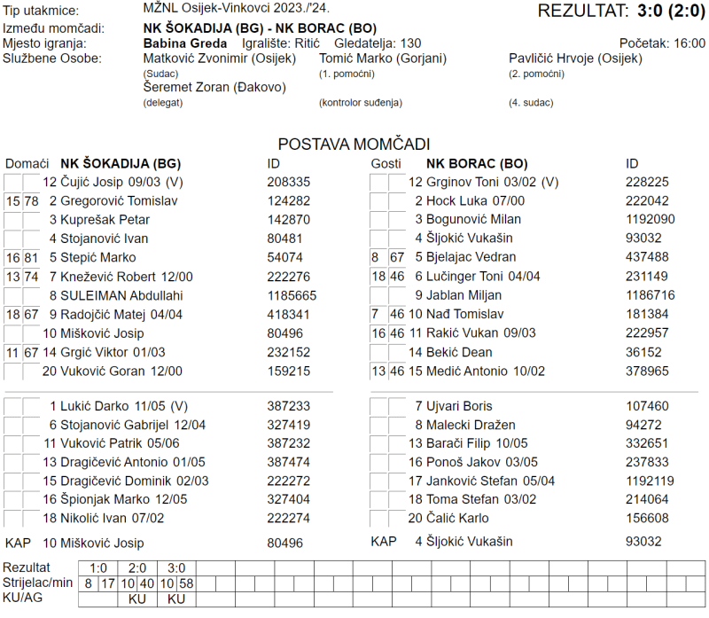 ŠOKADIJA – BORAC 3:0