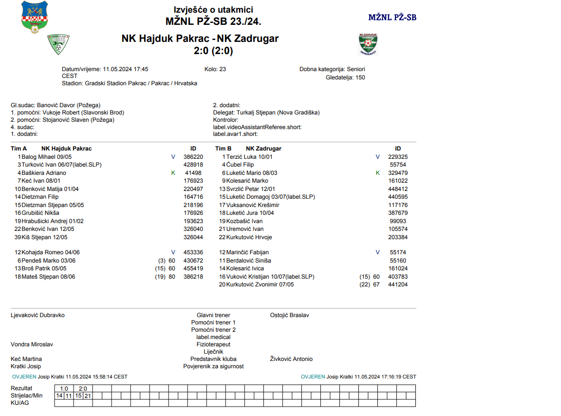 “Čestitam domaćinu na potpuno zasluženoj pobjedi, sudačkoj trojci na suđenju i svojim dečkima na borbi ,ali to nije bilo dovoljno ni za počasni gol protiv razigranog i rastrčanog domaćina.”-kazao je trener Zadrugara, Braslav Ostojić