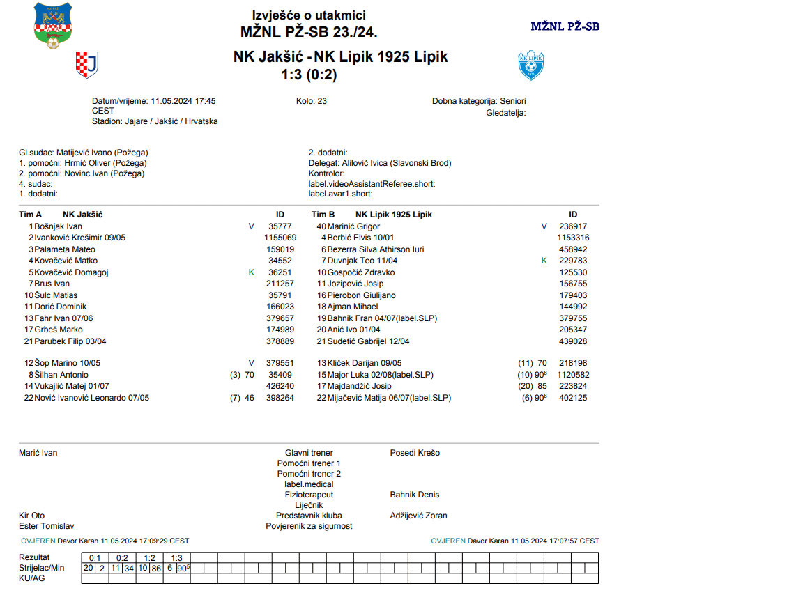“Danas smo se ipak malo ekipirali u odnosu na protekla kola, ali i cijeli tjedan dobro trenirali što nas je na kraju i nagradilo pobjedom na teškom gostovanju. Bravo za moje momke što smo prvenstveno na veliku želju i htijenje po meni apsolutno bili bolji protivnik i zasluženo slavili. Idemo se sad dobro spremiti i napokon nekog pobjediti na domaćem terenu. Također se želim ispričati Jakšiću u ime mog igrača zbog neprimjerenog ponašanja prilikom proslave gola.”-kazao je trener Lipika, Krešo Posedi.