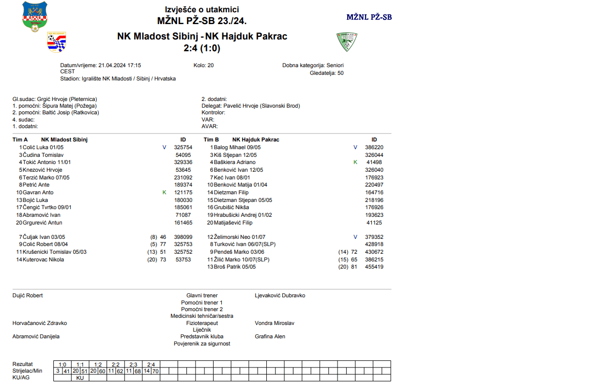 MLADOST-HAJDUK 2:4