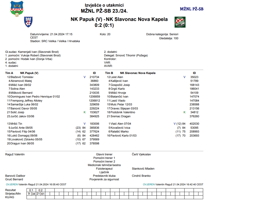 PAPUK-SLAVONAC  NOVA KAPELA 0:2