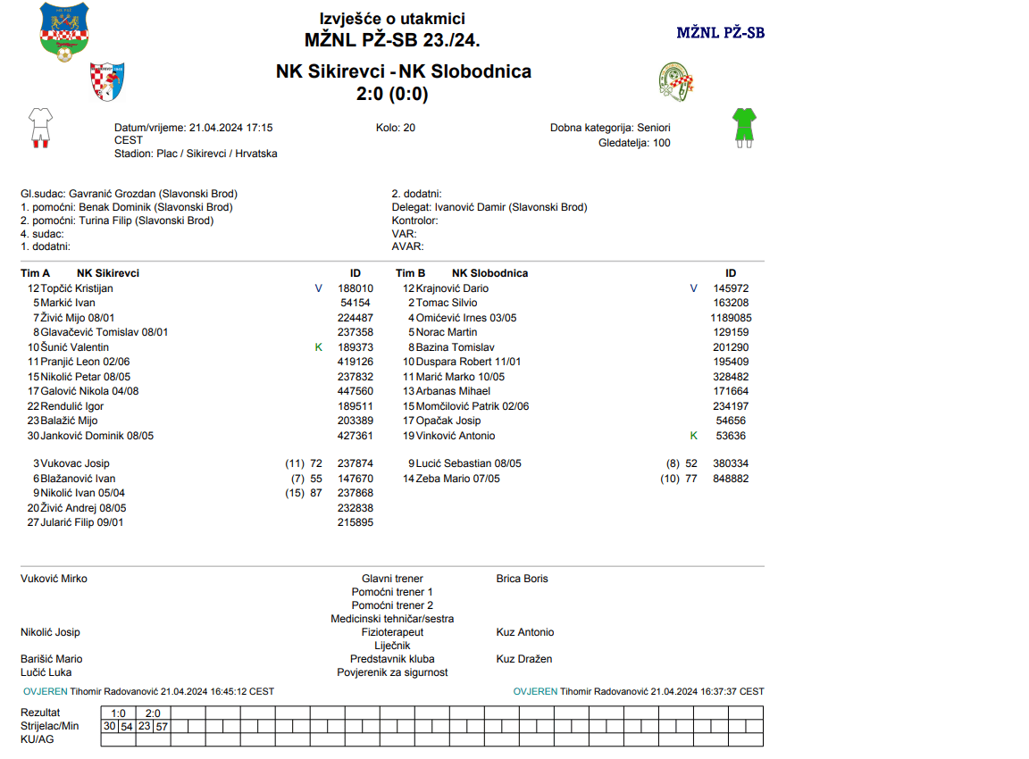 SIKIREVCI-SLOBODNICA 2:0
