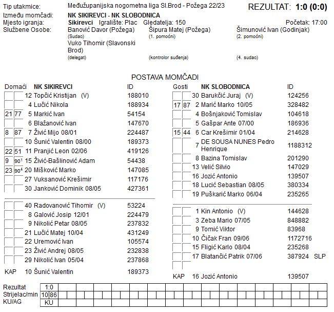 SIKIREVCI – SLOBODNICA 1:0