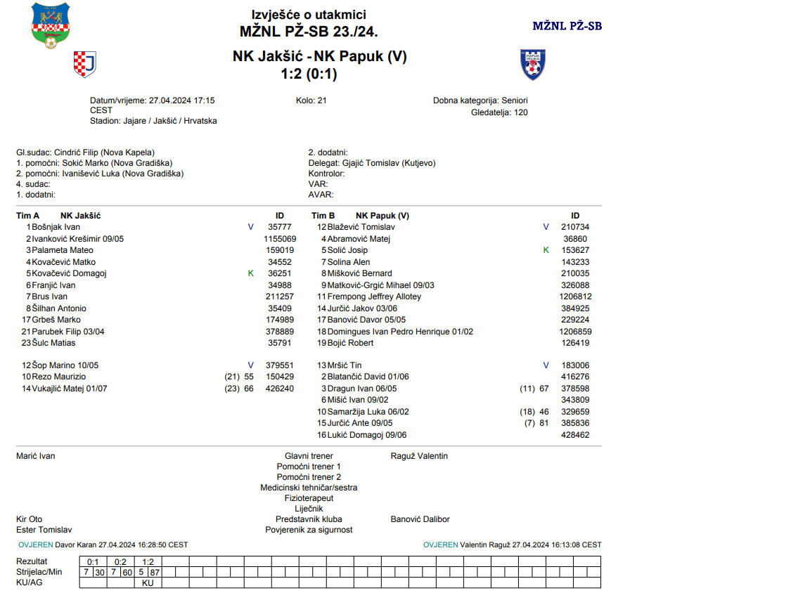 “Nakon zaslužene pobjede u Lipiku i prolaska u polufinale Kupa,što nam je i bio cilj..danas treća utakmica u 7 dana protiv Papuka.. u okrnjenom sastavu što zbog kartona,što zbog povreda,upisujemo poraz,mada u zadnjim minutama smo mogli i do boda. Umor je učinio svoje..Ništa,okrećemo se sljedećim utakmicama..Skidam kapu dečkima i svim ljudima oko kluba na pristupu cijelog proljeća,glavu gore i idemo u nove pobjede!”-izjavio je Ivo Marić, trener Jakšića