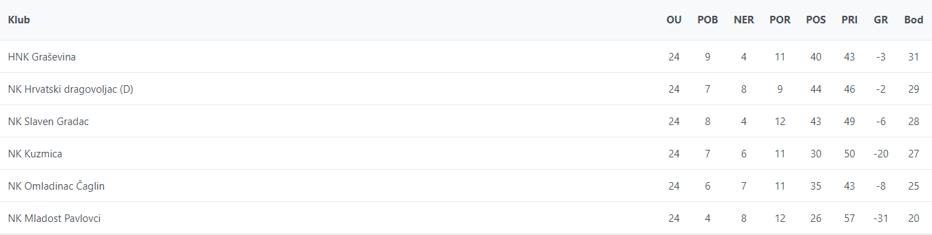 Slaven će ugostiti Graševinu. Obje ekipe su izborile opstanak i ući će bez pritiska u utakmicu. Za domaćine neće igrati zbog neodrađene suspenzije Ivica Poljaković i Davor Gagulić. Sigurno nas očekuje dobra i zanimljiva utakmica gdje igrači mogu pokazati sav svoj talent bez pritiska.