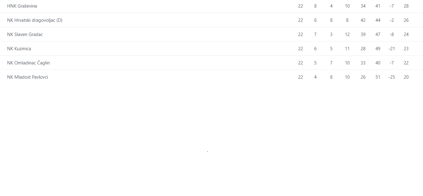 Napeto je i na dnu tablice i bit će borba do zadnjeg kola tko će završiti na posljednjem mjestu na tablici.