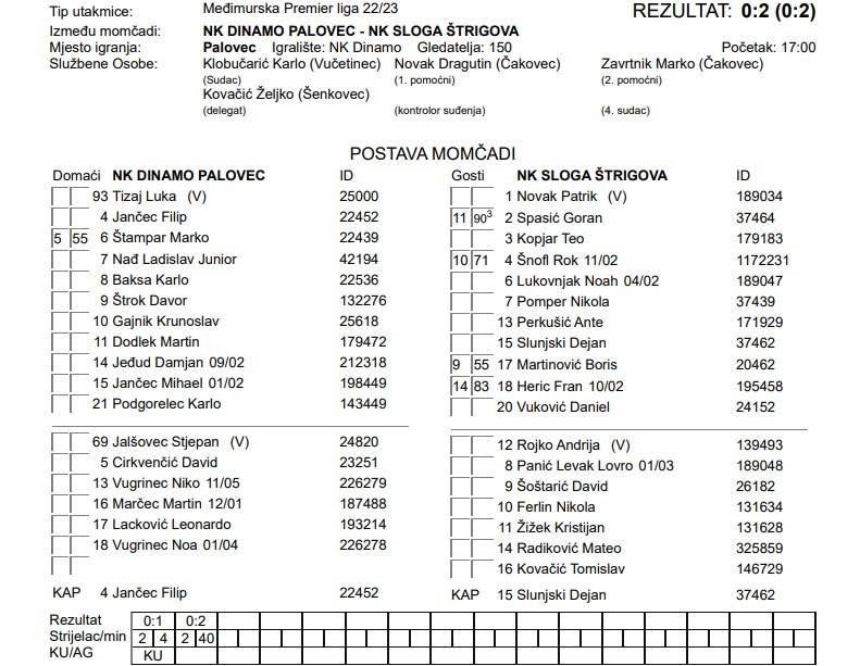 NK DINAMO PALOVEC – NK SLOGA ŠTRIGOVA 0:2
