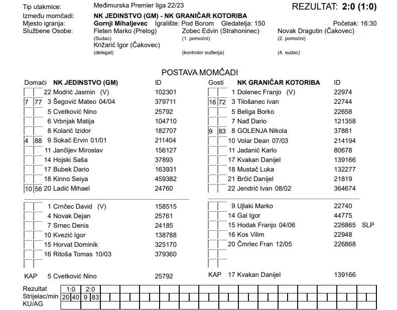 NK JEDINSTVO (GM) – NK GRANIČAR KOTORIBA 2:0