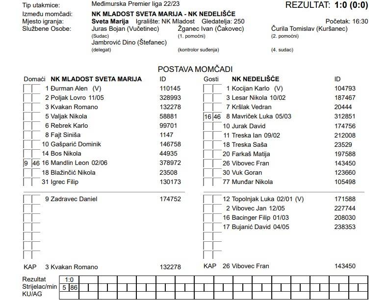 NK MLADOST SVETA MARIJA – NK NEDELIŠĆE 1:0