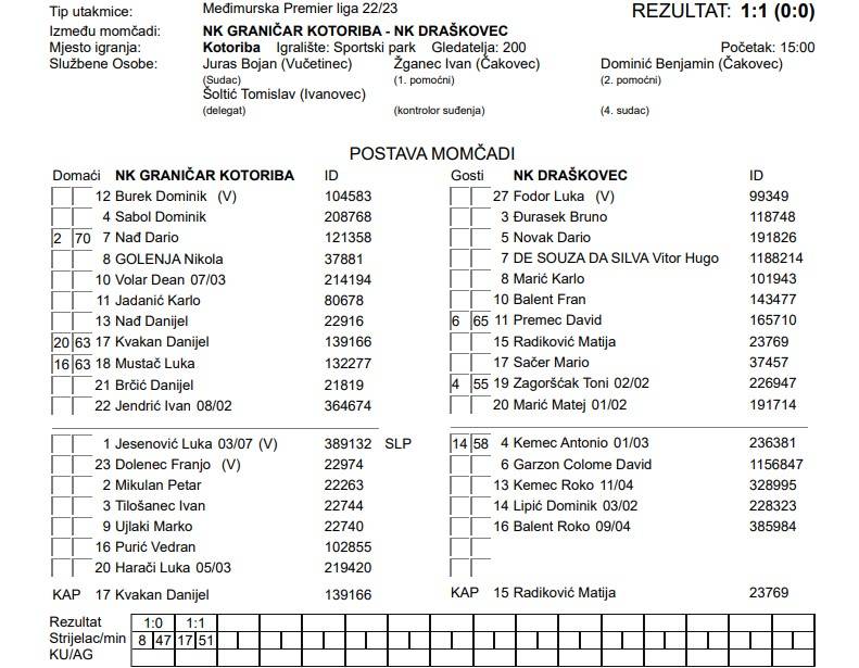 NK GRANIČAR KOTORIBA – NK DRAŠKOVEC 1:1