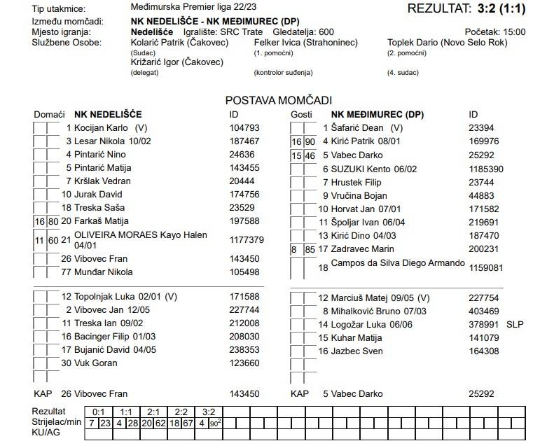 Fantastična utakmica i susret dostojan svakog velikog derbija. Na megdan Nedelišću stigao je Međimurec koji se nadao ostvariti dobar plasman. Iako su obje momčadi pružile odličnu igru, slavlje je na kraju otišlo domaćinu. Poveli su gosti preko Filipa Hrusteka u 23. minuti susreta, a već pet minuta kasnije Nino Pintarić je izjednačio. Matija Farkaš doveo je domaćina u vodstvo u 62. minuti susreta. Gosti pet minuta kasnije izjednačuju preko Diega Armanda. Ipak, veliku pobjedu domaćinu donosi Pinatrić u drugoj minuti sudačke nadoknade.