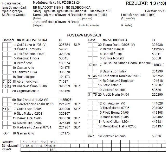 Mladost iz Sibinja u općinski derbi je stigla kao dvanaesta momčad poretka sa šest osvojenih bodova, odnosno omjerom od dvije pobjede i sedam poraza, dok je istovremeno Slobodnica skupila četiri boda iz devet susreta te učinkom od četiri neriješena ishoda i pet poraza.