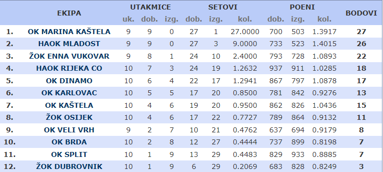 Odbojkašice ŽOK Osijeka su u sklopu 10.kola Superlige na domaćem terenu Gradskog Vrta ugostile odbojkašice OK Kaštela te su upisale neugodan poraz rezultatom 1:3 (25:18, 14:25, 17:25, 8:25).