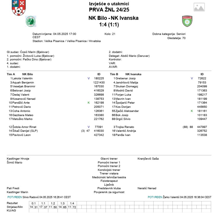 Odlična predstava ekipe Ivanske u gostima kod Bila. Ovdje imamo totalno dvije suprotne situacije, domaćin koji je izgleda upao u određenu krizu, te gosta koji igra odlično i ostvaruje treću uzastopnu pobjedu. Petar Špoljarić je goste doveo u vodstvo u 31. minuti, a Marko Matuško je izjednačio u 37. što je bio i rezultat s kojim se otišlo na odmor. U 50. minuti Luka Forjan je zabio za novo vodstvo Ivanske, a onda su i Špoljarić i Forjan poduplali svoj upis u listu strijelaca i tako postavili konačnih 1:4. Ivanska je sada dvanaesta.