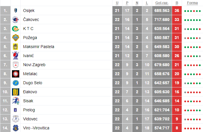 Svoj susret 23. kola Osječani će igrati kod kuće, a dolaze im rukometaši Čakovca. Nakon pražnjenja u Kupu protiv Sesveta u srijedu, Osijek se vrlo brzo mora rekuperirati i vratiti prvenstvenim obavezama. S obzirom da određeni susreti nisu odigrani, Čakovec se trenutno nalazi odmah iza Osječana pa je ovo derbi kola u kojem bi Osijek pobjedom napravio velik korak prema osvajanju naslova prvaka. Susret ovih protivnika je na rasporedu u subotu, s početkom u 15:30h u sportskoj dvorani Zrinjevac.